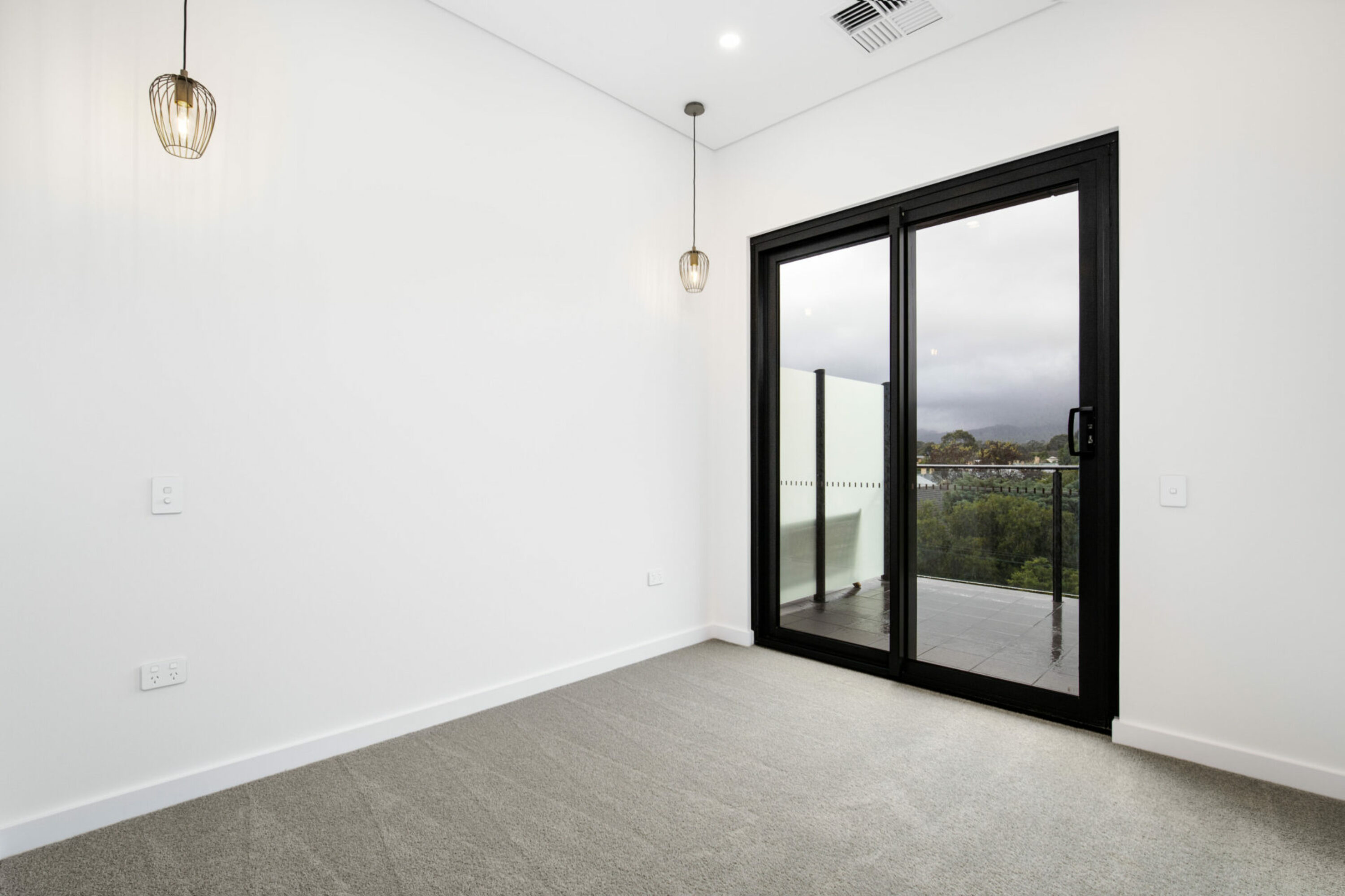 The living spaces are bathed in natural light, accentuating the magnificent views of the hills. Warm timber floorboards create an inviting ambiance, seamlessly leading to the entertainer’s balcony, where you can unwind and take in the beauty of the Adelaide Hills. The master bedroom is a haven of luxury, featuring drop pendant lighting with dimmer functionality, high-quality carpeting, and direct access to the balcony. The spacious walk-in robe provides ample closet space and leads to the indulgent ensuite, complete with stone vanity tops, LED lighted mirror, upgraded gold tapware, and shower fittings, all adorned with crisp white finish tiles. The second bedroom exudes sophistication with downlights, high-quality carpeting, and large floor-to-ceiling built-in robes with mirrored doors. Sunlight cascades through the generous windows, creating a serene and inviting atmosphere.