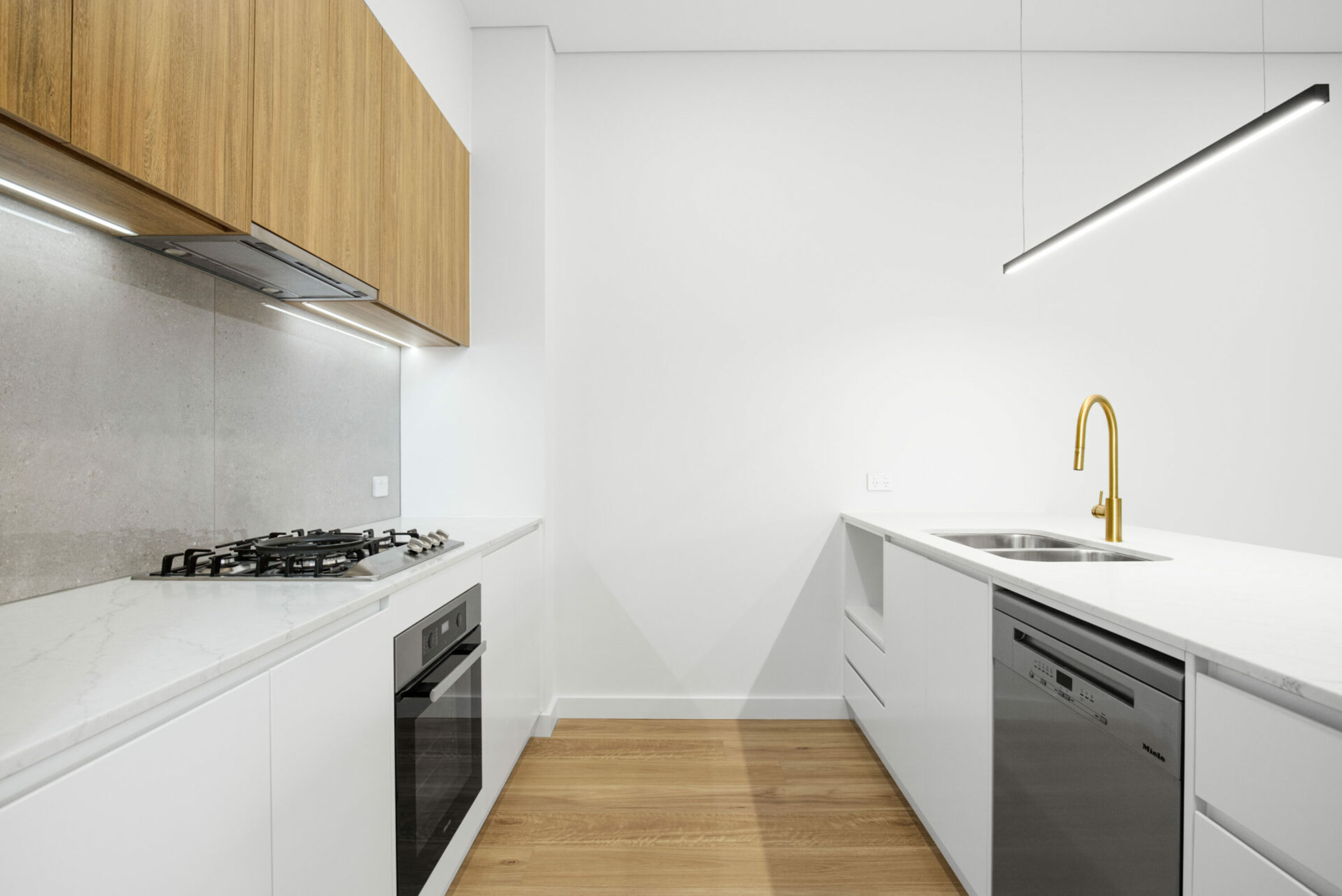 As you step into your new home, you’ll be captivated by the exquisite designer finishes and vaulted ceilings. The thoughtfully designed kitchen, tailored for the discerning cook, boasts top-of-the-line German-made Miele appliances, elegant stone benchtops, upgraded gold tap finishings, and an easy-to-maintain glass splashback. With quality overhead LED lighting and a perfectly placed Miele dishwasher, entertaining becomes a breeze, leaving you more time to savour a glass of wine on the balcony while enjoying breathtaking sunset views.